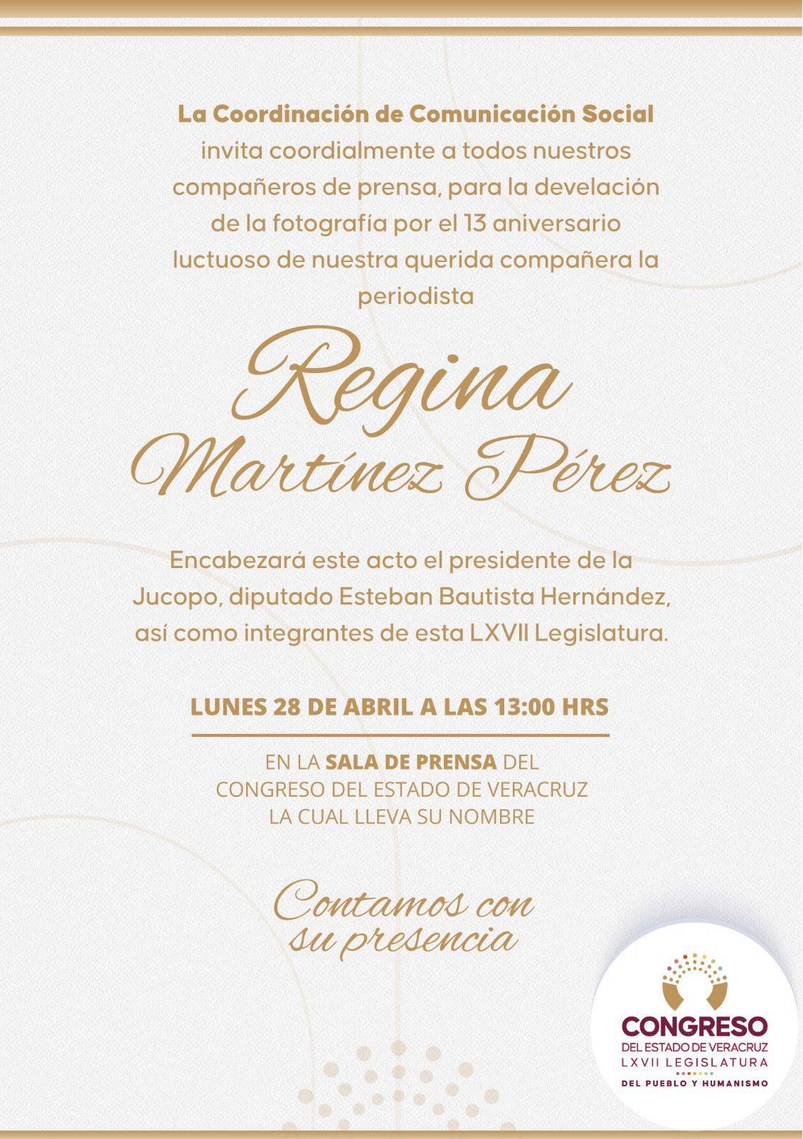 13 ANIVERSARIO LUCTUOSO DE LA PERIODISTA REGINA MARTÍNEZ PÉREZ