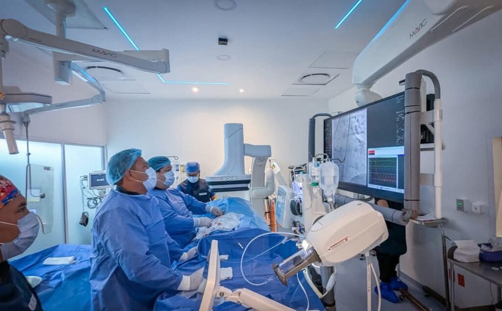 “El procedimiento se lleva a cabo mediante la punción de la arteria radial o femoral; se utilizan catéteres especiales guiados por rayos X y un medio de contraste para visualizar las arterias. En este caso se evidenció un flujo sanguíneo lento, pero sin obstrucciones arteriales”, detalló.