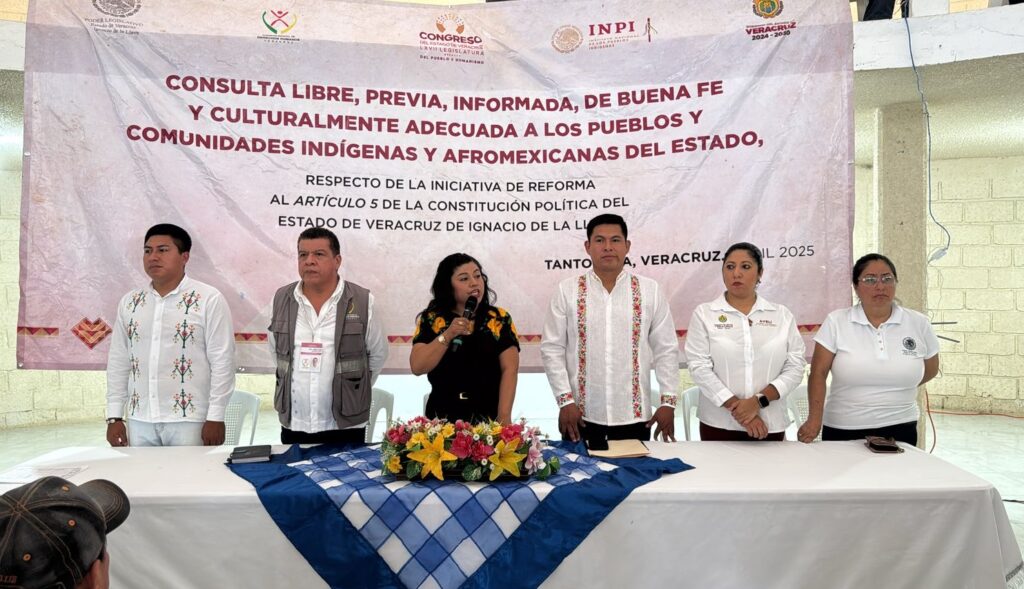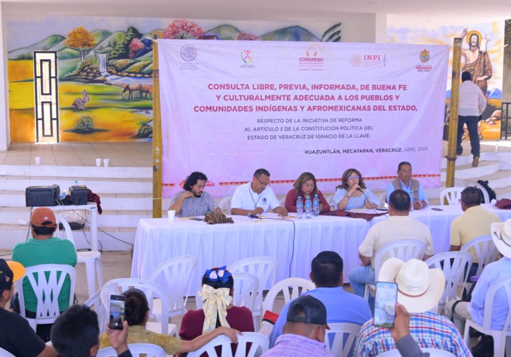Xalapa, Ver., 28 de abril de 2025.- Diputadas y diputados de la LXVII Legislatura continúan realizando en distintos puntos del territorio veracruzano los foros de consulta libre, previa, informada, de buena fe y culturalmente adecuada a los pueblos y comunidades indígenas y afromexicanas de la entidad, para la reforma al Artículo 5° de la Constitución Política del estado.