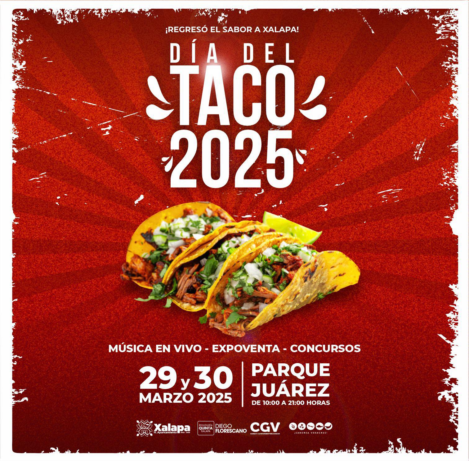 Xalapa, Ver. – El Ayuntamiento de Xalapa y el Consejo Gastronómico Veracruzano (CGV) invitan a la ciudadanía a celebrar el Día del Taco 2025, este 29 y 30 de marzo en el Parque Benito Juárez, de 10:00 a 21:00 horas.