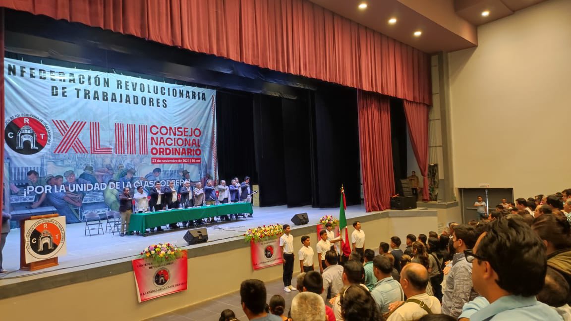La Confederación Revolucionaria de Trabajadores (CRT) llevó a cabo este día su XLIII Consejo Nacional Ordinario en el Auditorio Salvador Díaz Mirón de la ciudad de Xalapa, Veracruz, consolidándose como uno de los eventos sindicales más amplios, representativos e institucionales del país. Al encuentro asistieron delegaciones de 28 entidades federativas, dirigentes nacionales, federaciones estatales y organizaciones sindicales adheridas a la CRT.