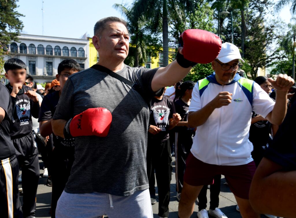 Xalapa, Ver. – El deporte une, forma una buena sociedad y nos fortalece contra las adicciones, afirmó el alcalde Alberto Islas Reyes durante la Clase Nacional de Boxeo “Por la paz y contra las adicciones”, que encabezó la presidenta de México, Claudia Sheinbaum, desde la capital del país.