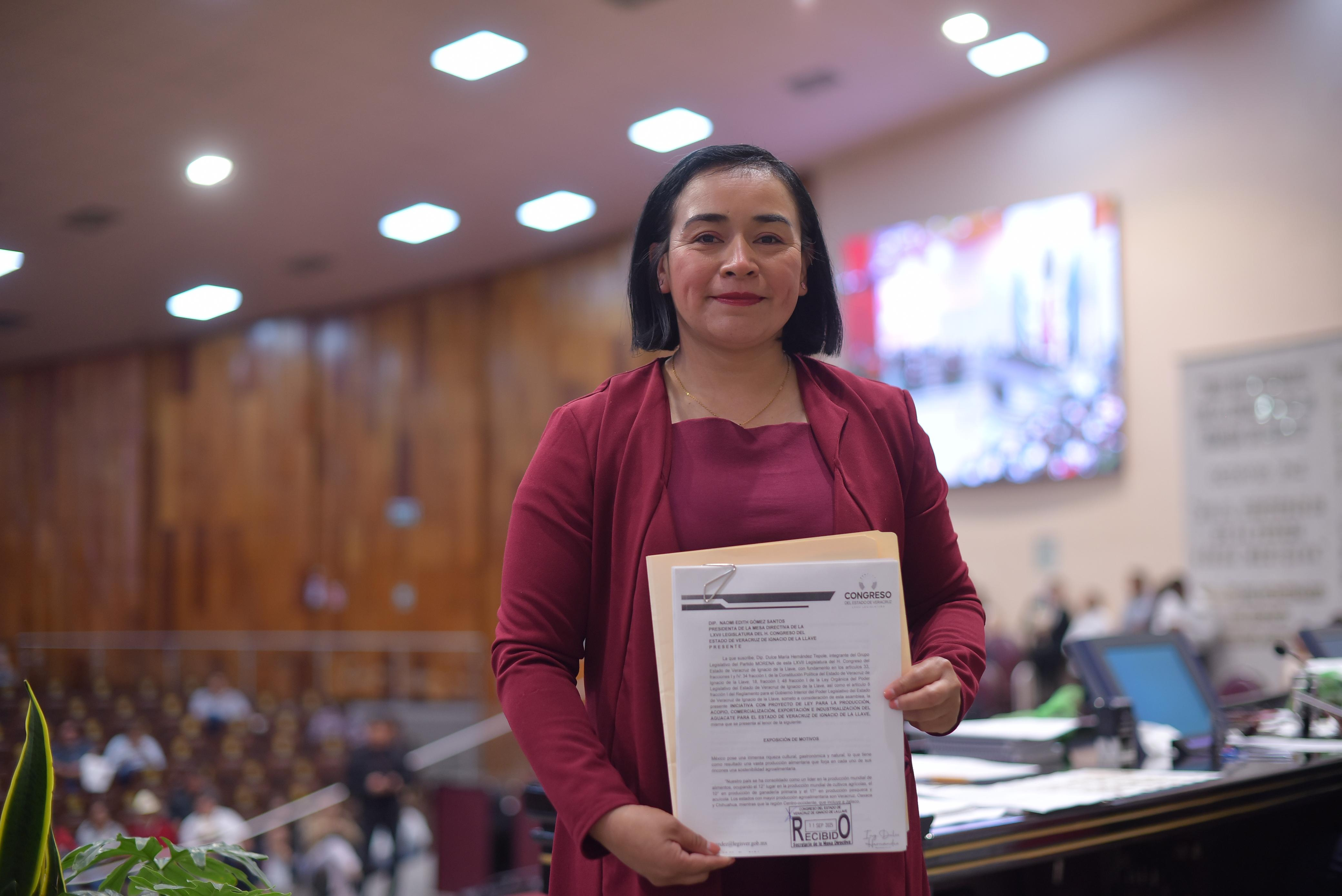 Con el objetivo de apoyar la cadena de valor del sistema productivo del aguacate, además de promover, fortalecer y desarrollar, la comercialización, las prácticas seguras, sostenibles y sustentables en el proceso de producción, la diputada Dulce María Hernández Tepole presentó al Pleno del Congreso la iniciativa de Ley para la Producción, Acopio, Comercialización, Exportación e Industrialización del Aguacate para el Estado de Veracruz.