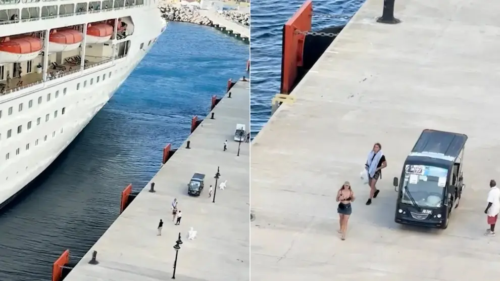 Tal y como recoge The Sun, en el vídeo se ve a los dos turistas viajando a toda velocidad en un carrito de golf negro de regreso a su crucero de la compañía Royal Caribbean, el Rhapsody of the Seas.