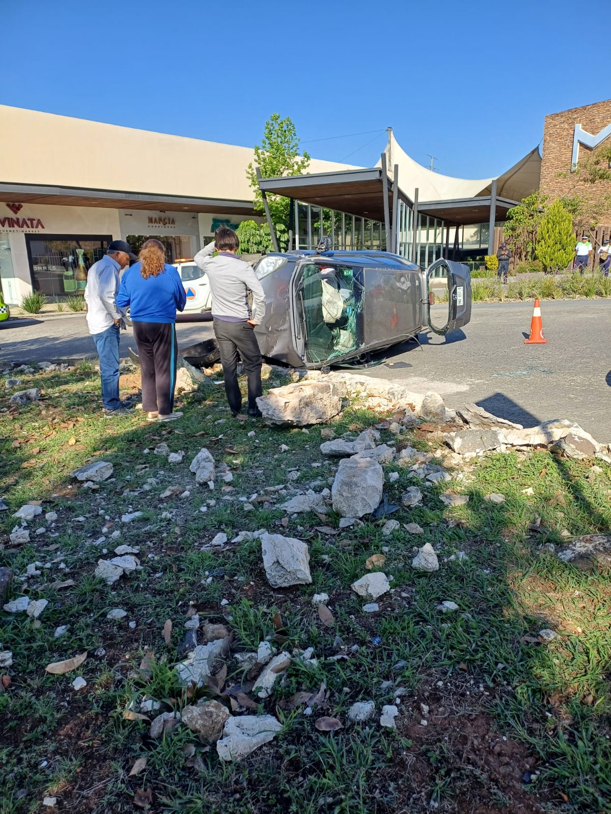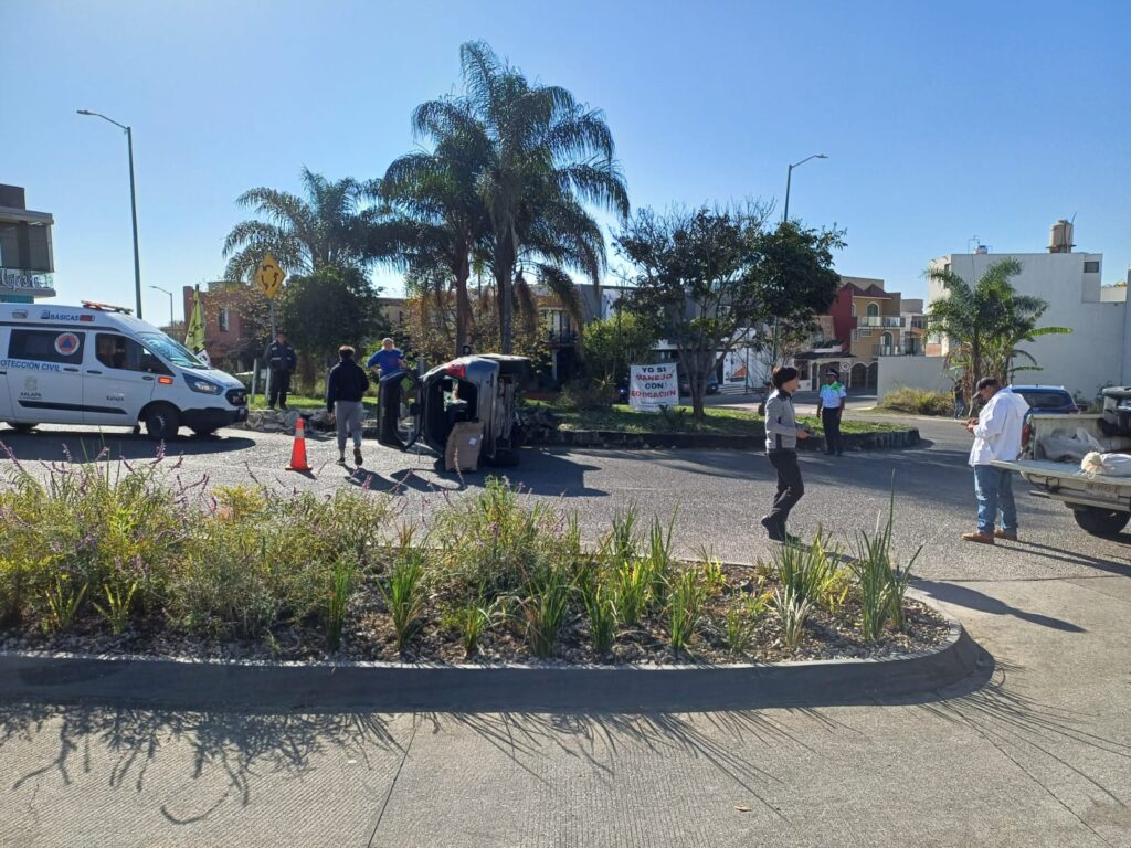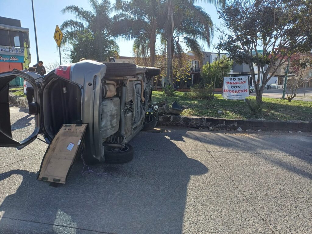 El exceso de velocidad y la imprudencia ocasionaron la volcadura de un vehículo en la Glorieta de la Plaza Montemagno. Afortunadamente no hubo lesionados, pero sí un gran susto.